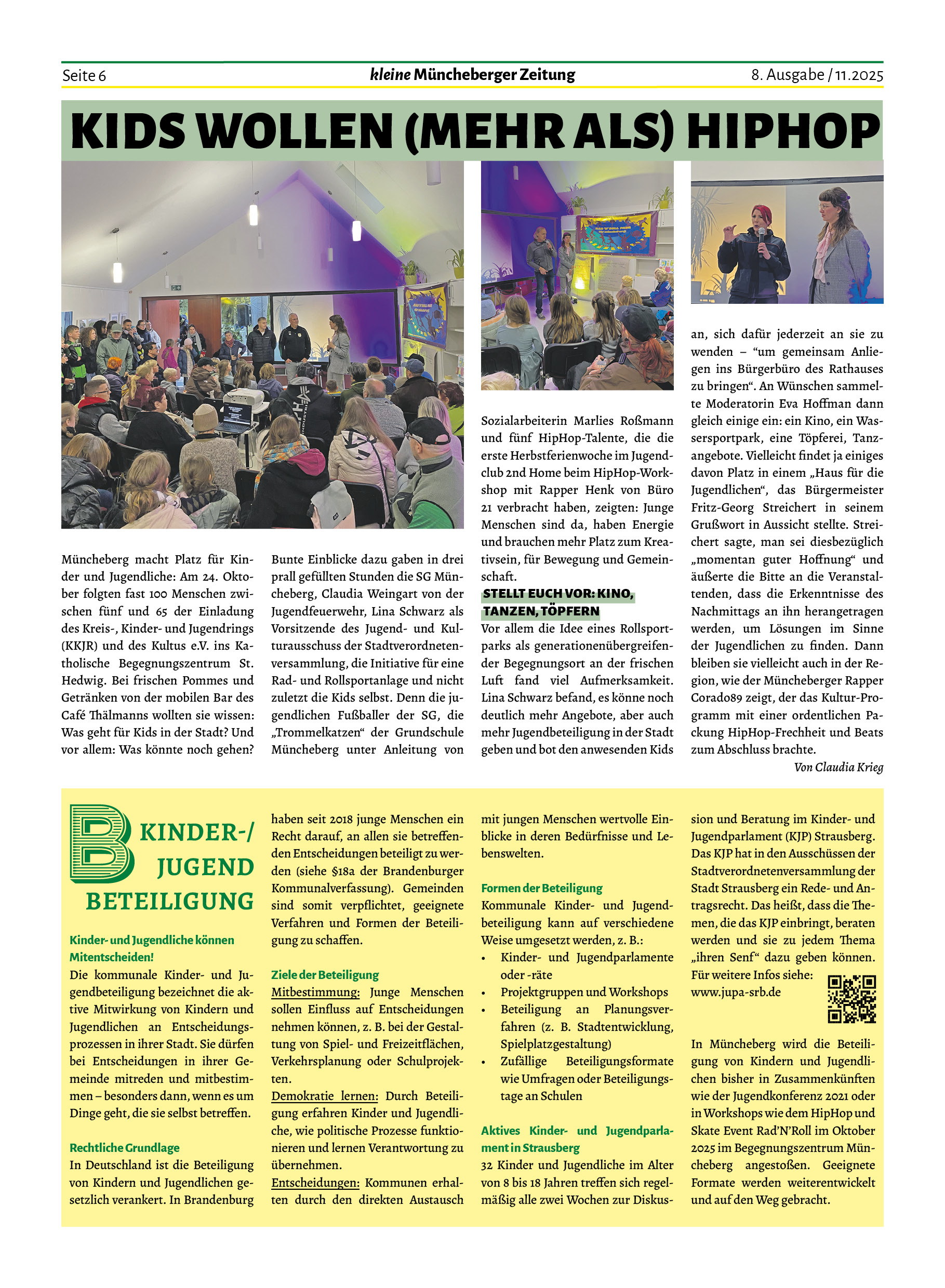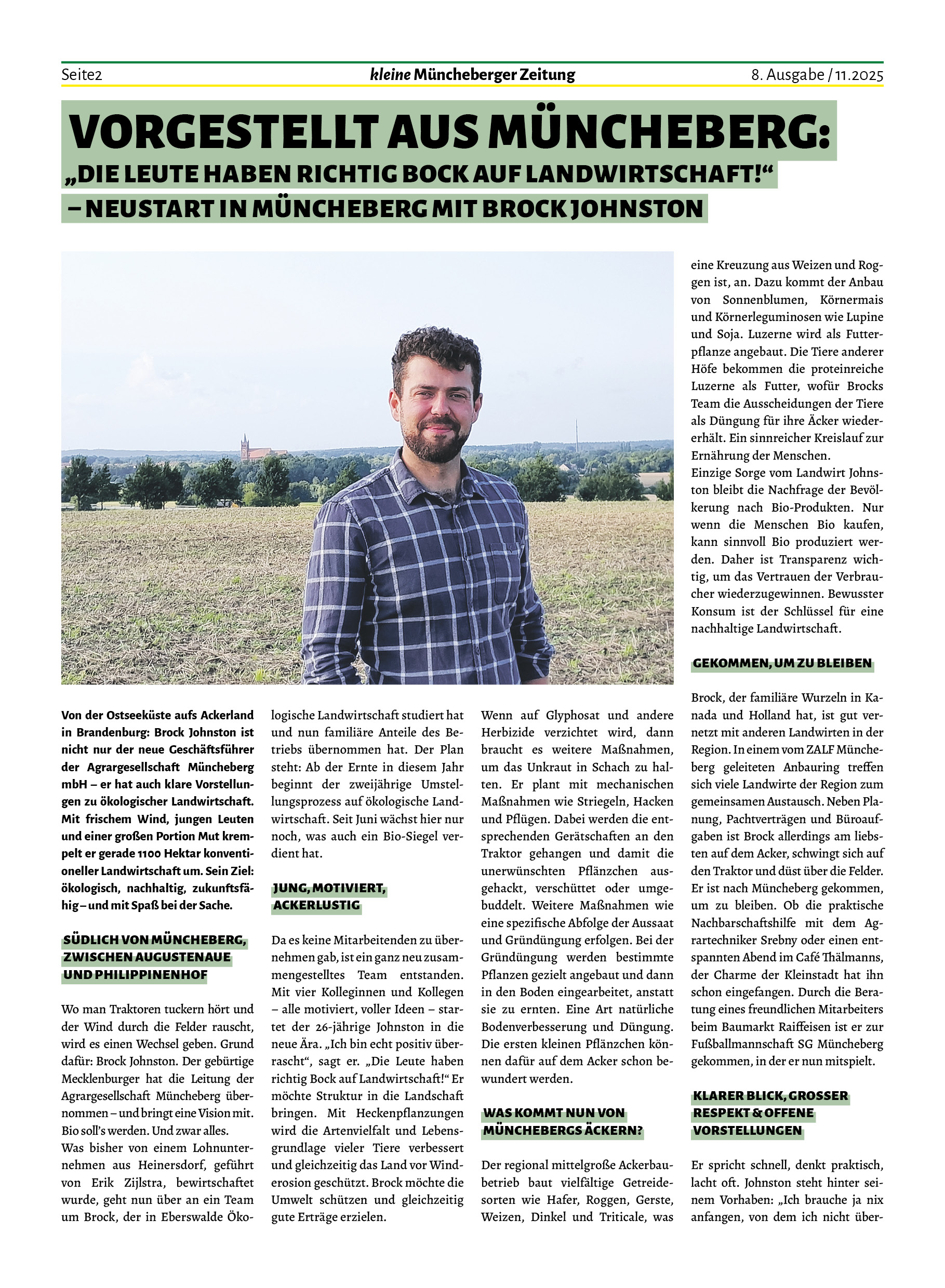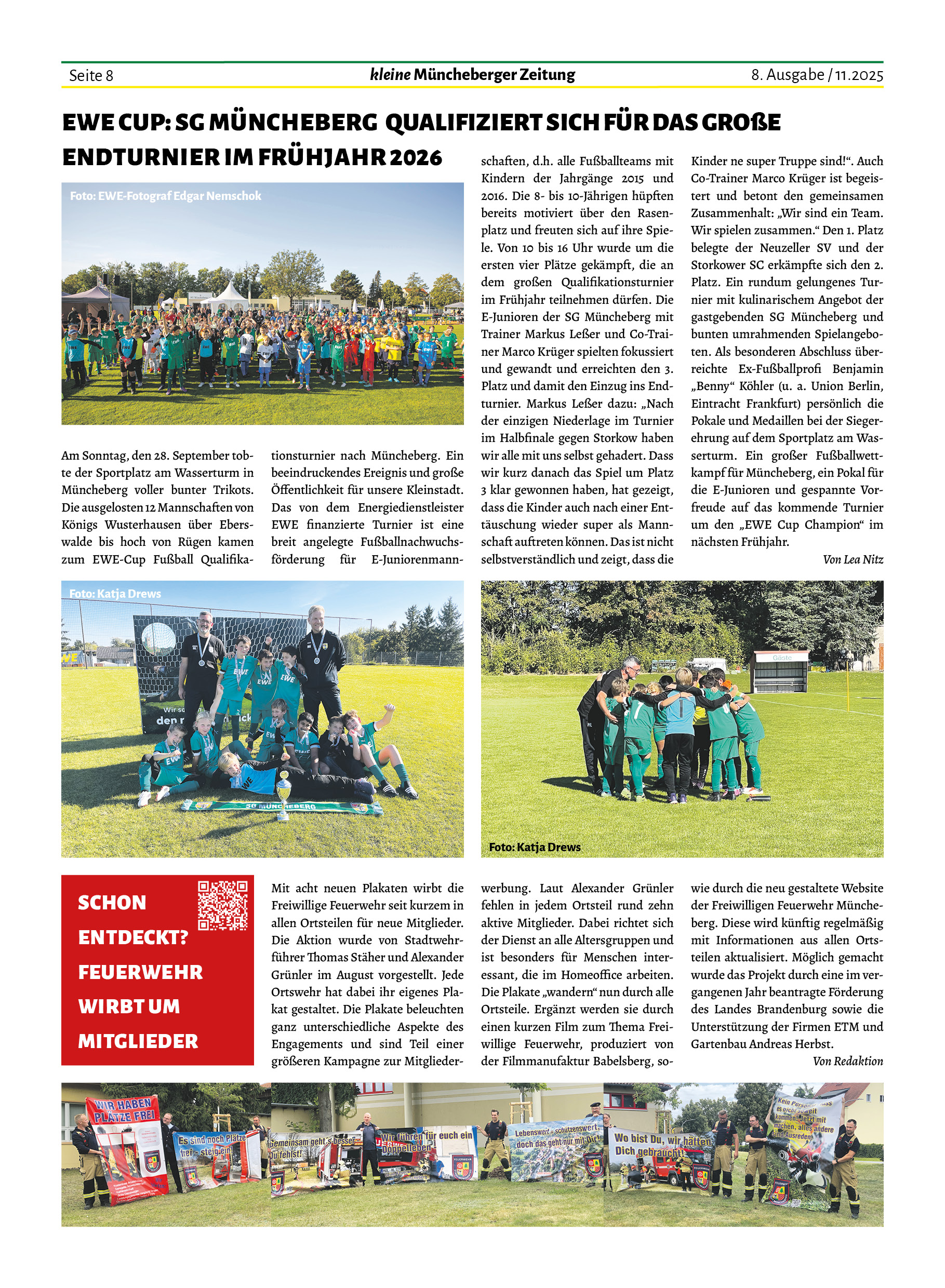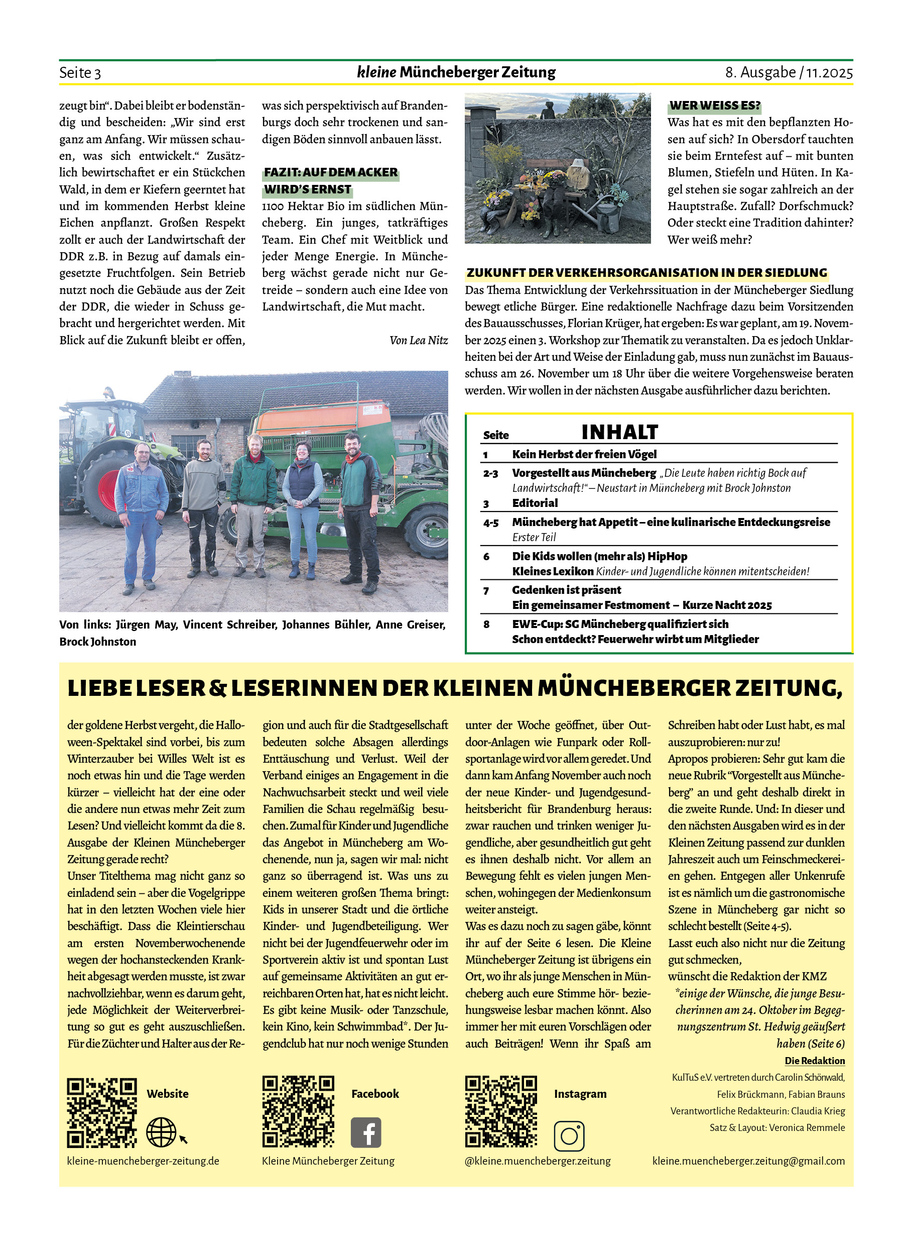 Auch wir können von einigen Begegnungen berichten, die in dieser Ausgabe Platz gefunden haben. Ob mit Kindern und Jugendlichen Ende Oktober im Begegnungszentrum St. Hedwig oder beim EWE Cup auf dem Fußballplatz, mit jungen Landwirten oder dem Kleintierzüchterverein – Menschen aus Müncheberg sind in Bewegung für die Dinge, die ihnen wichtig sind und es ist schön, sich mit ihnen darüber auszutauschen.