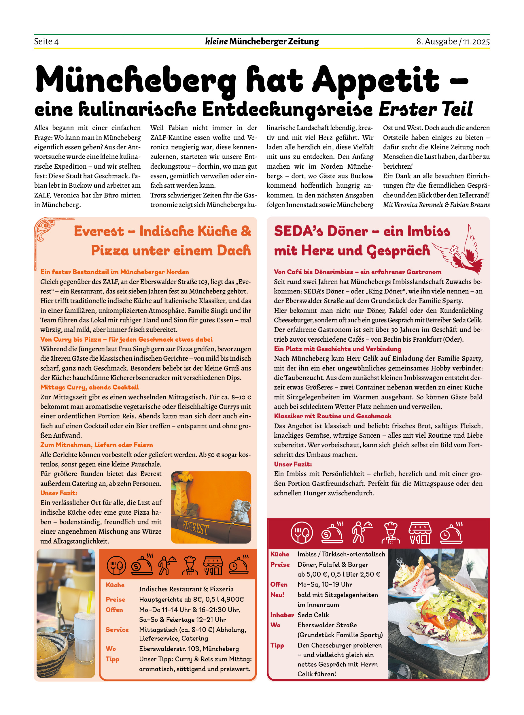 Zum Auftakt einer ganz besonderen Serie haben wir außerdem begonnen, die gastronomische Seite Münchebergs zu erforschen. Herausgekommen ist eine Art „Schlemmerkolumne“, die in den kommenden Ausgaben fortgesetzt werden soll. Was es sonst noch zu erzählen gibt: Lest selbst und kommt gut und warm durch die kalte Zeit!